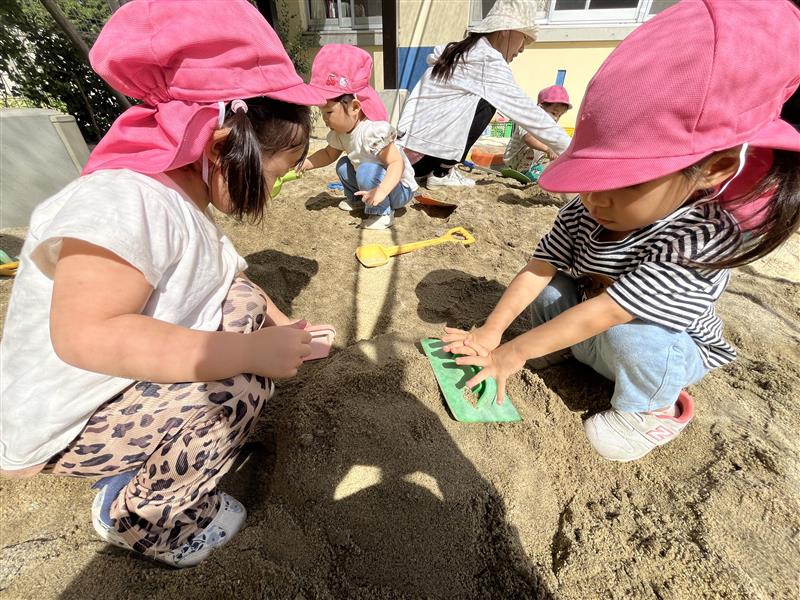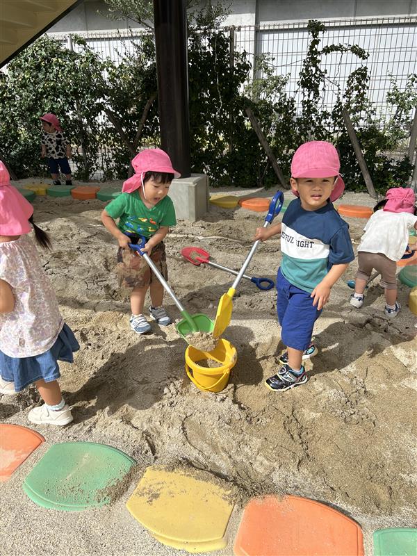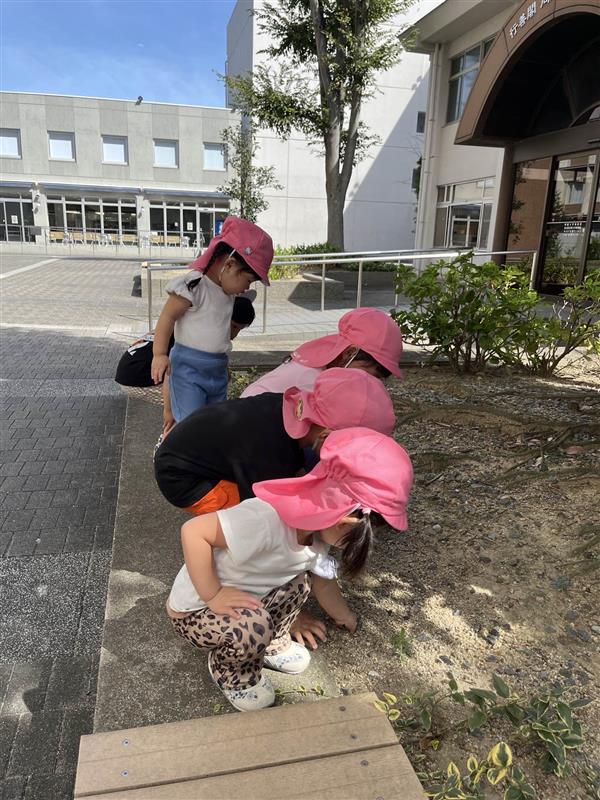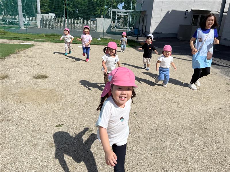 少しづつ涼しくなり、園庭で遊べる日が増えてきました。季節の移り変わりを感じながら、のびのびと体を動かして遊ぶ心地よさを感じられるように過ごしていきたいと思います。