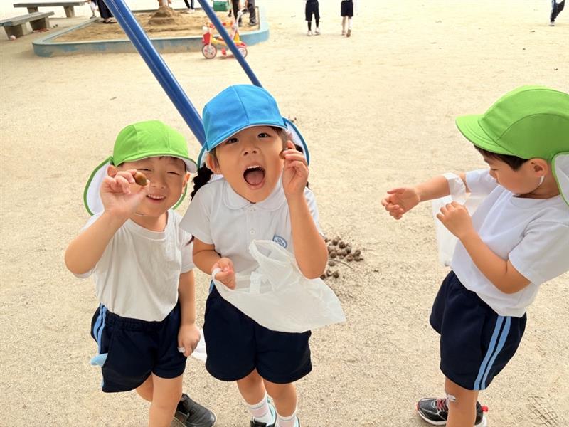 明日から拾ってきたドングリを使って製作をしたり、ままごとをしたり楽しんでいきたいと思います♪