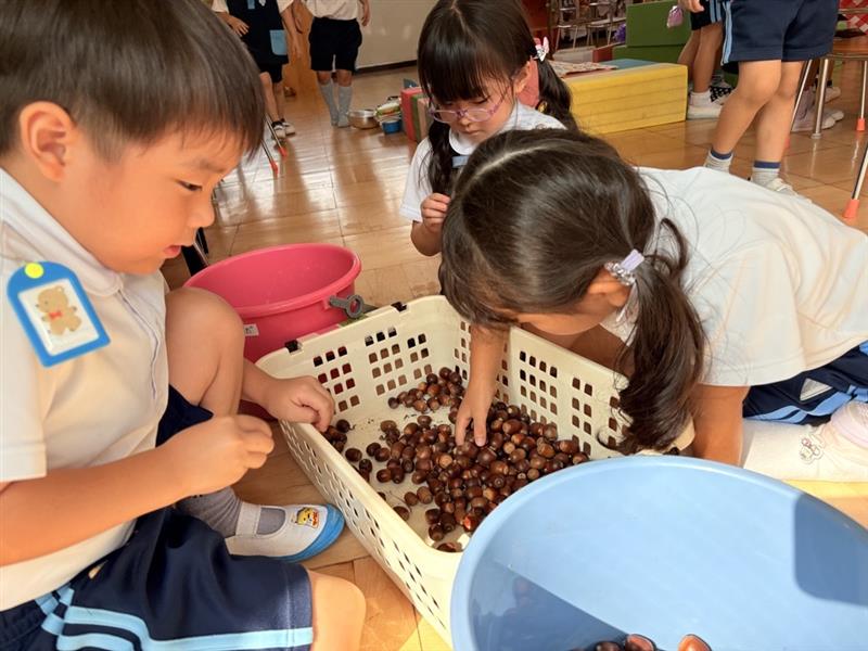 園に帰った後は、きれいなドングリと割れたドングリを仕分けしました!