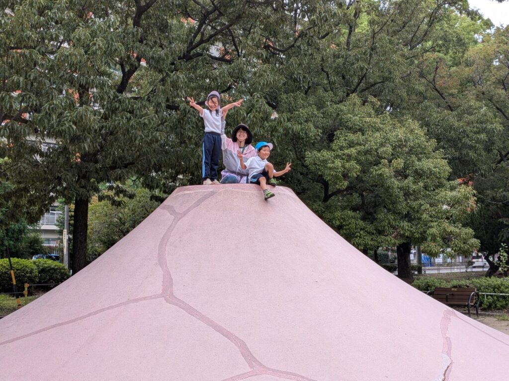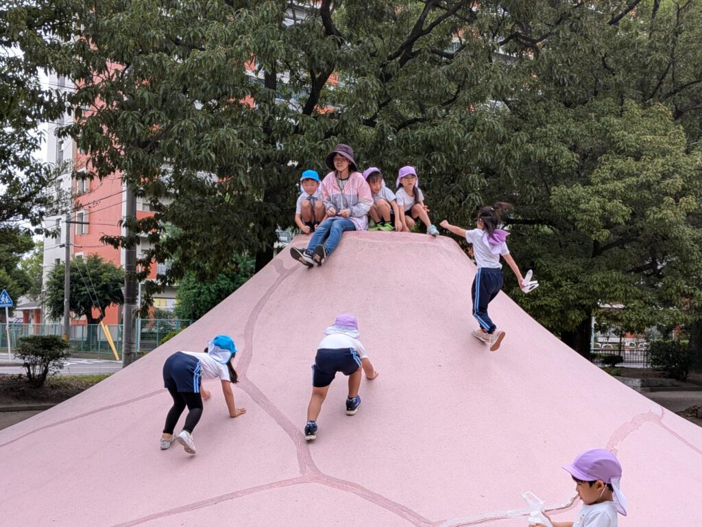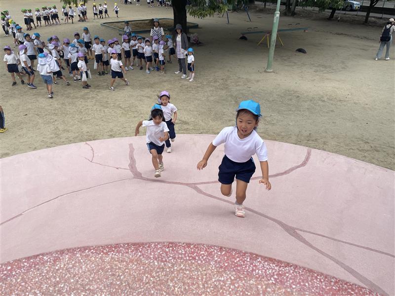 ドングリを拾った後は、年長組は山登りチャレンジ、年中組は滑り台をして帰ってきました☆