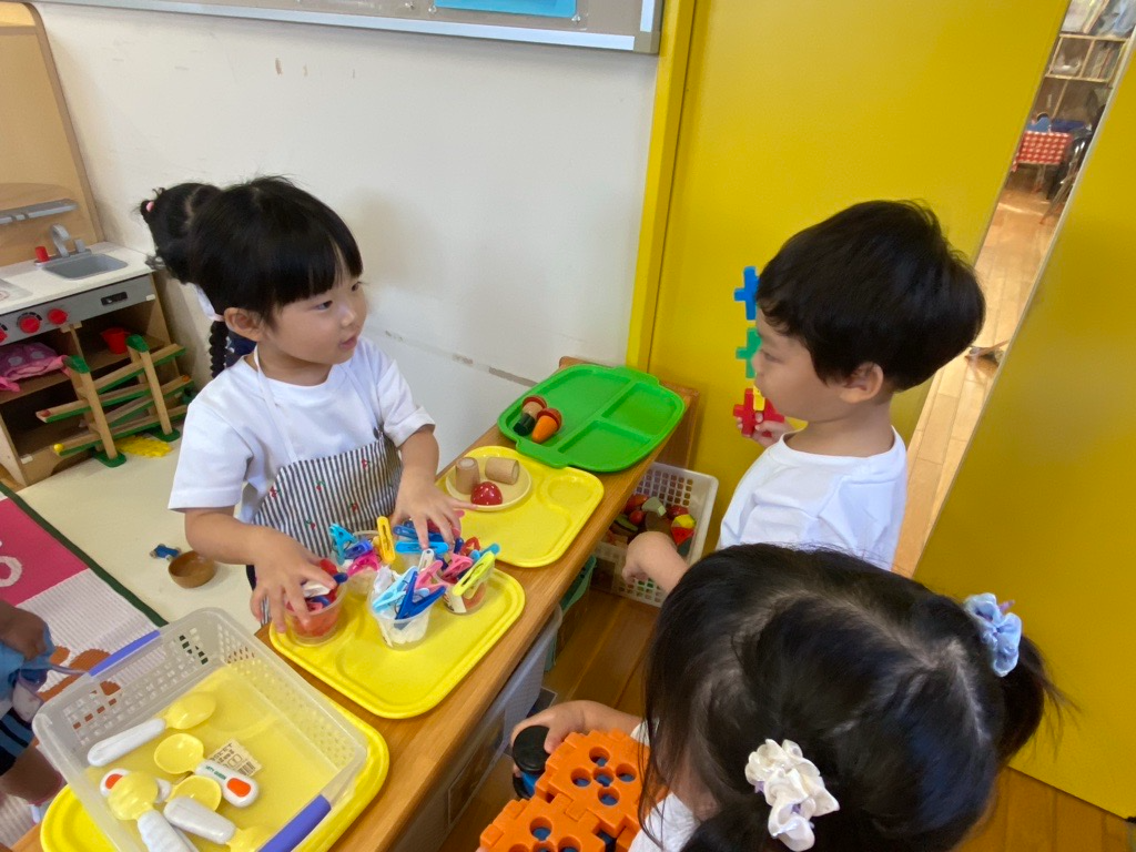 遊びの中では、好きな友達と簡単な会話が増え、集まって関わりを楽しんでいます。今後も子ども達のいろいろな姿を伝えていけたらと思っています。