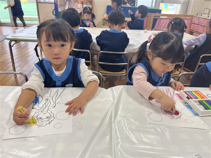 塗り絵は、筆圧が強くなってきて好きな色で塗り込むことが楽しいようです。