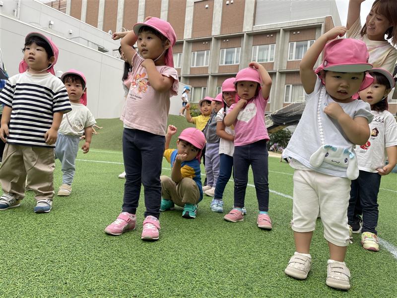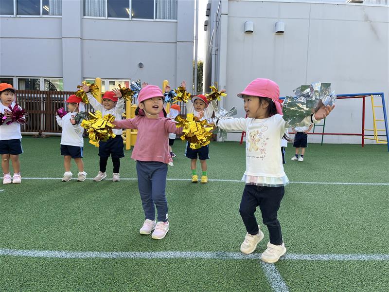お兄さん、お姉さんたちの練習の様子を見る機会が多くなり、自分たちも「外で踊りたい!」「かけっこしたい!」の気持ちが高まってきたところで本番を迎えることができました。