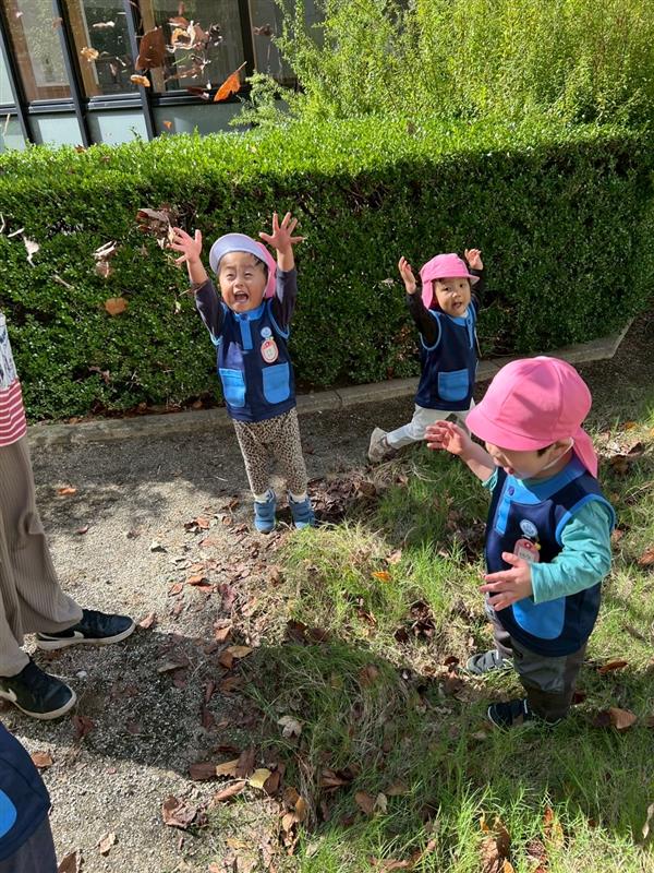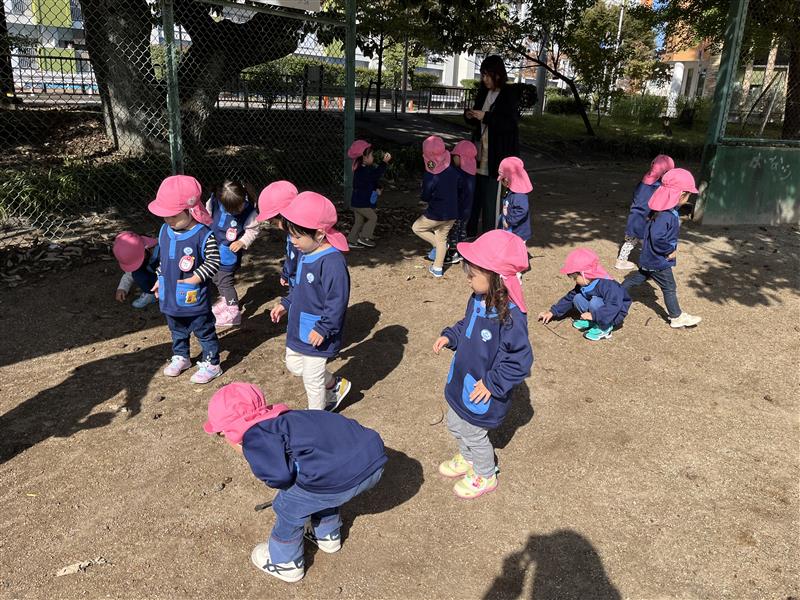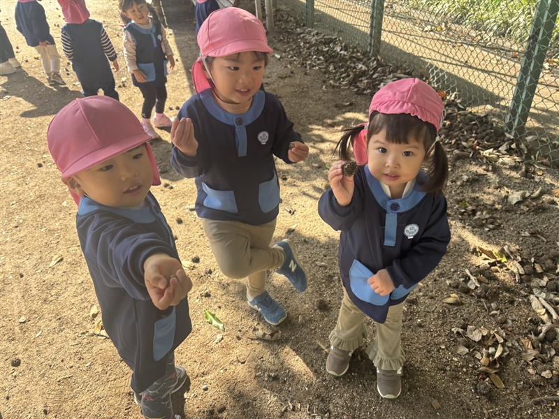 学園内散歩では、先生と一緒にどんぐり探しをしました。