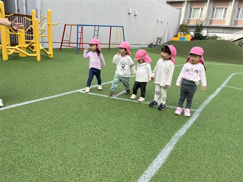 広場でかけっこもしました。幼稚園よりも広いことに大喜びの子どもたちでした☆