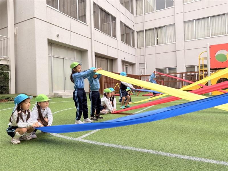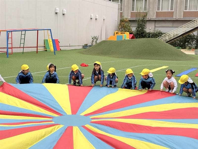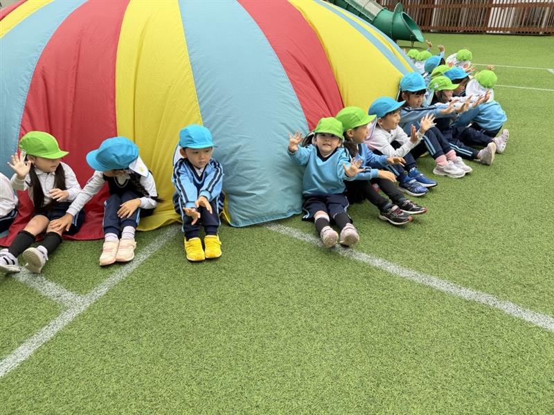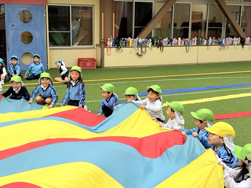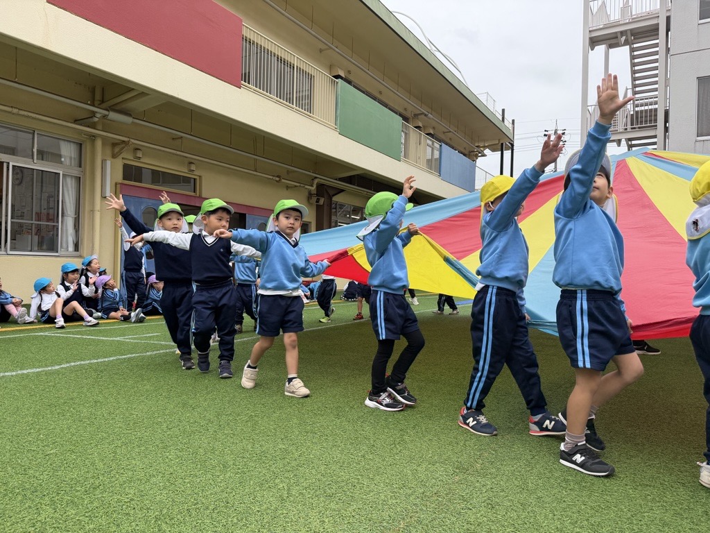 最後は、年中組皆でバルーンを行いました!上手にできるかな?