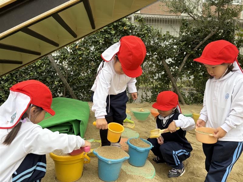 寒い日が増えてきたので、衣服の調節をしながら体が温かくなる心地よさを感じられるように園庭で体を動かす遊びを楽しみたいと思います。