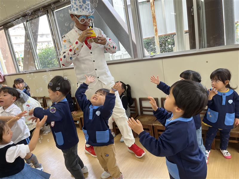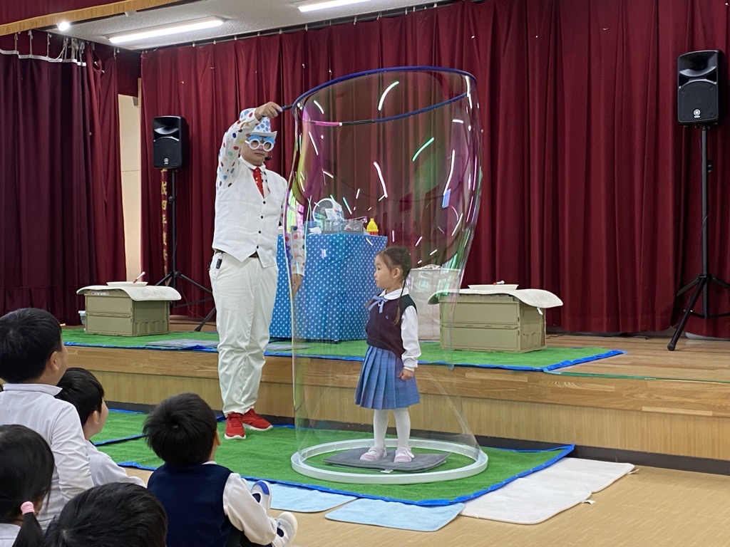 今日は、朋友会主催のバブリン先生のしゃぼん玉ショーを行いました。