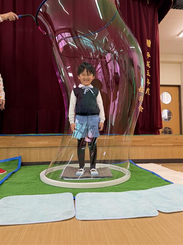 年長組は、最後に一人ひとりしゃぼん玉の中に入れてもらいました!!
