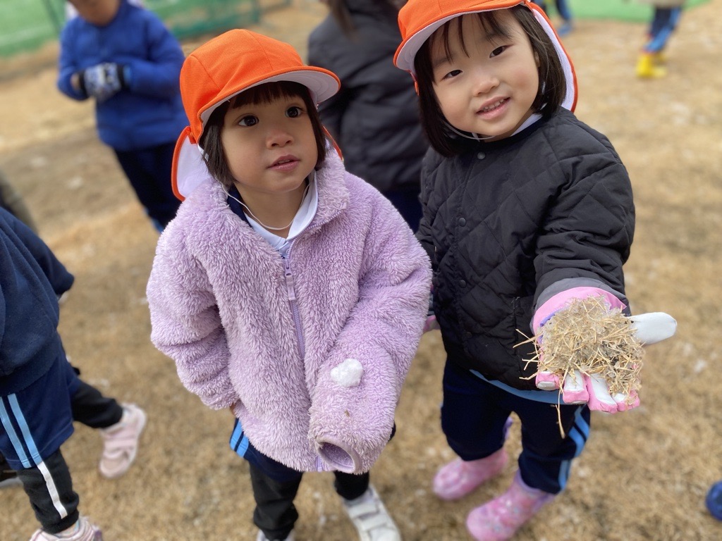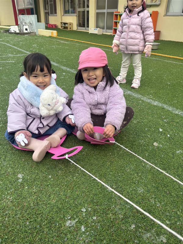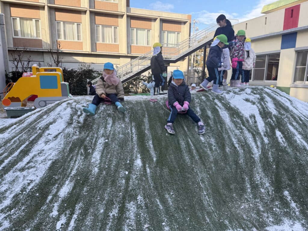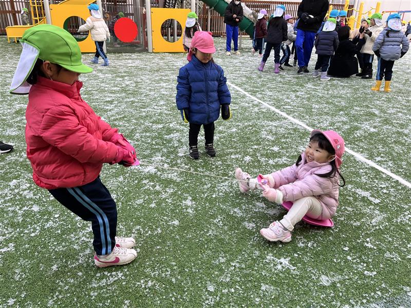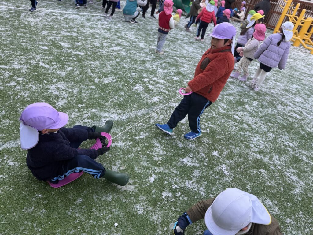 積雪は少しでしたが、登園後、すぐに園庭で遊びました♪