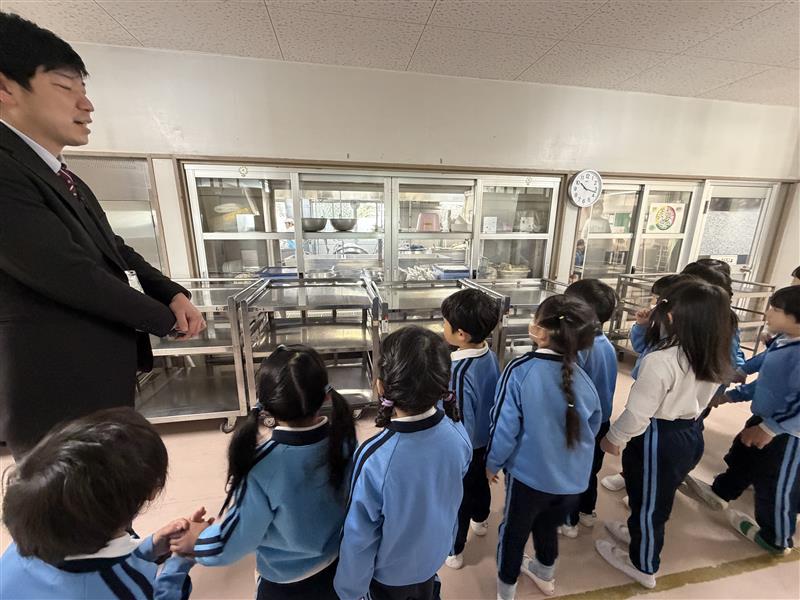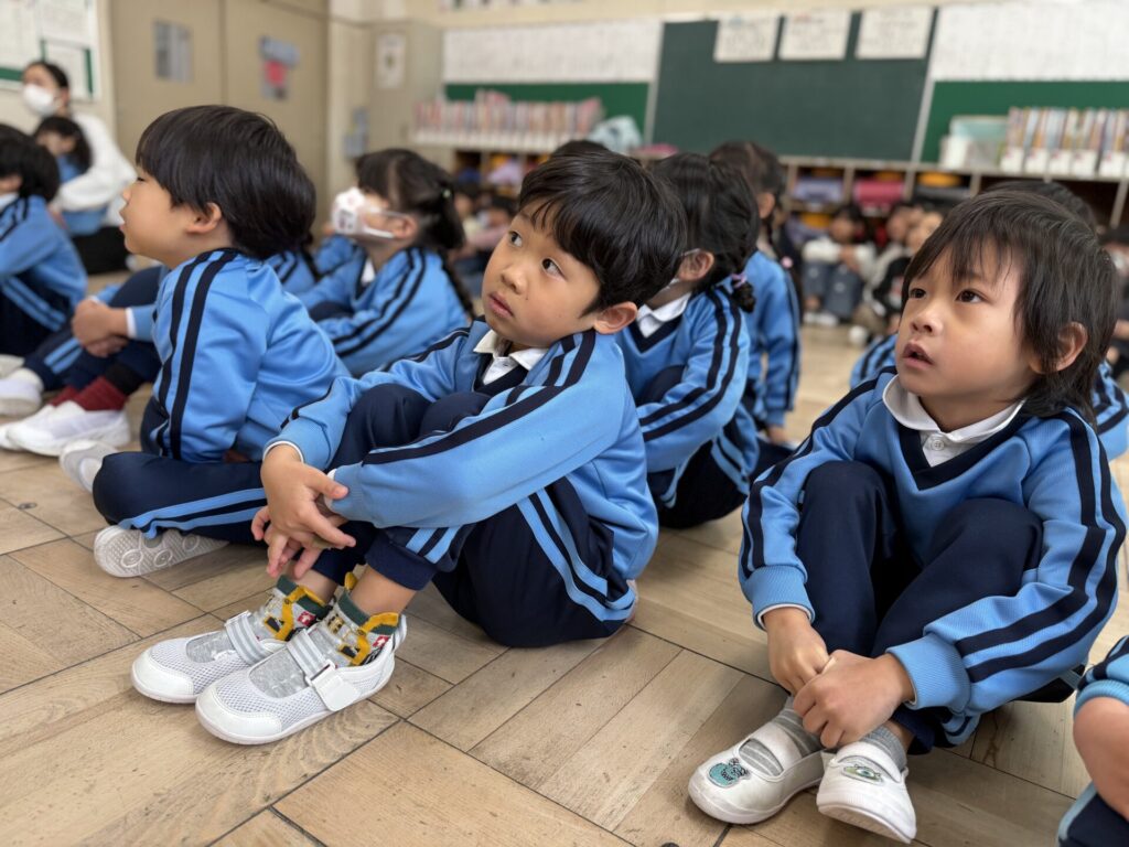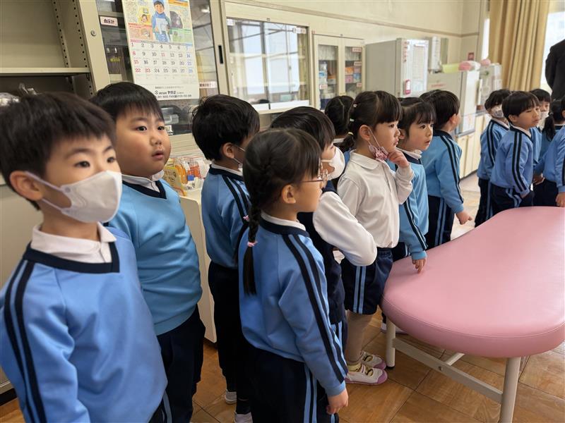 保健室や職員室の様子も見せていただき、「幼稚園とは違うね!」と様々な違いを見つけていました。