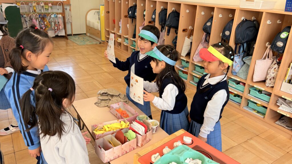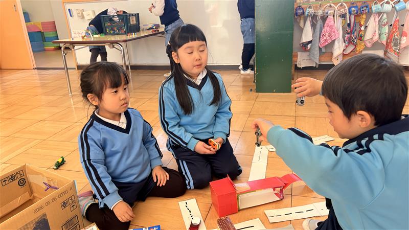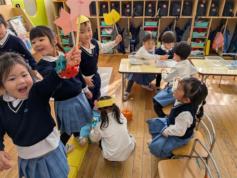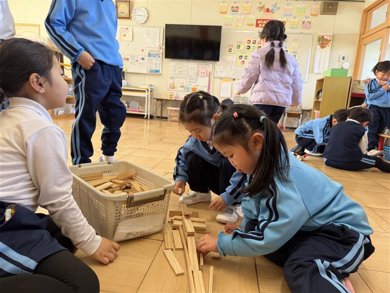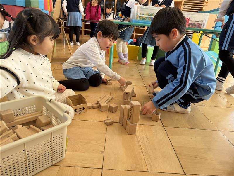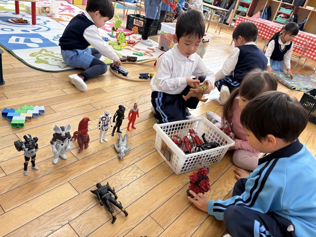 普段のクラスにはない玩具や道具を選んで遊んでいる子もいれば、自分のクラスで落ち着いて遊んでいる子もいました。楽しい遊びを見つけたり、様々な友達との関わりを広げていけたらと思います。