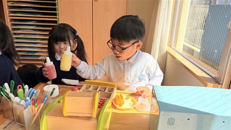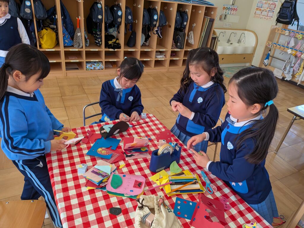 年少・年中・年長で、登園準備が終わった子から9時30分まで、どこのクラスに行ってもいい時間として、自分で行きたいクラスを選んで遊んでいます。また、5日の午後もシャッフルタイムとして、自由にクラスを選んで遊びました。