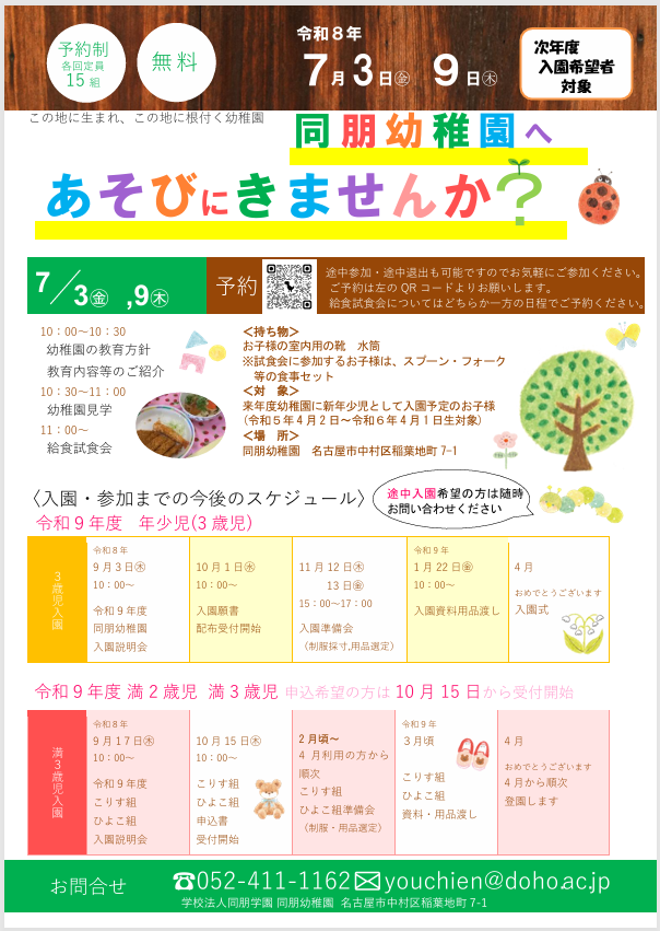 「同朋幼稚園へあそびにきませんか?」の予約受付を開始しました。